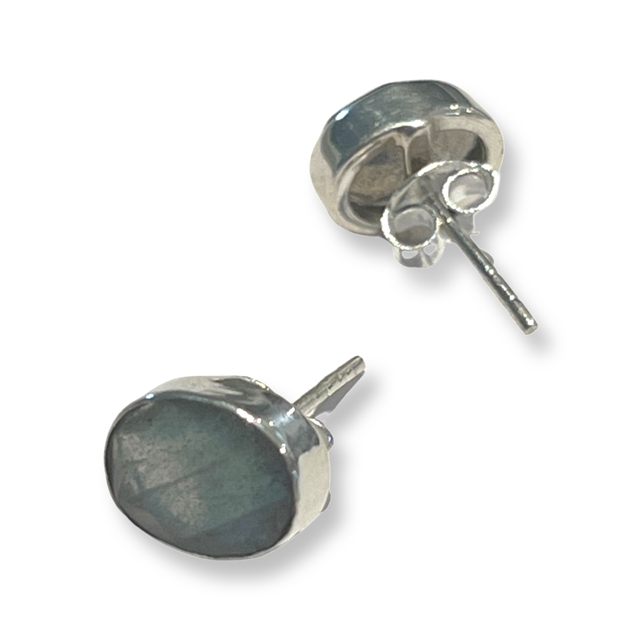 Elegant single crystal oval-shaped earrings. Each stone is mounted in silver with silver post and butterfly.