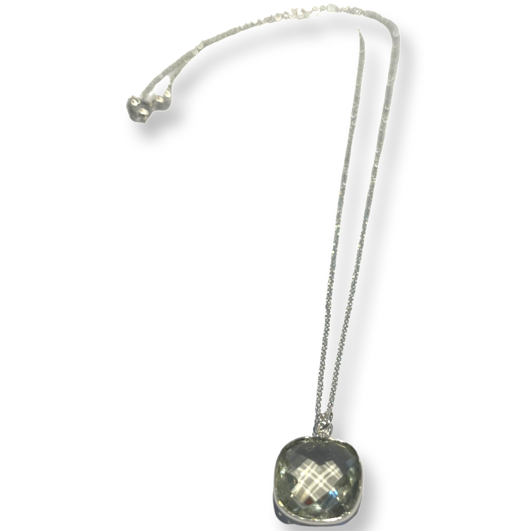 Elegant single crystal necklace with 22cm silver chain. Each stone drop is banded with silver to elevate the look of this simple necklace.