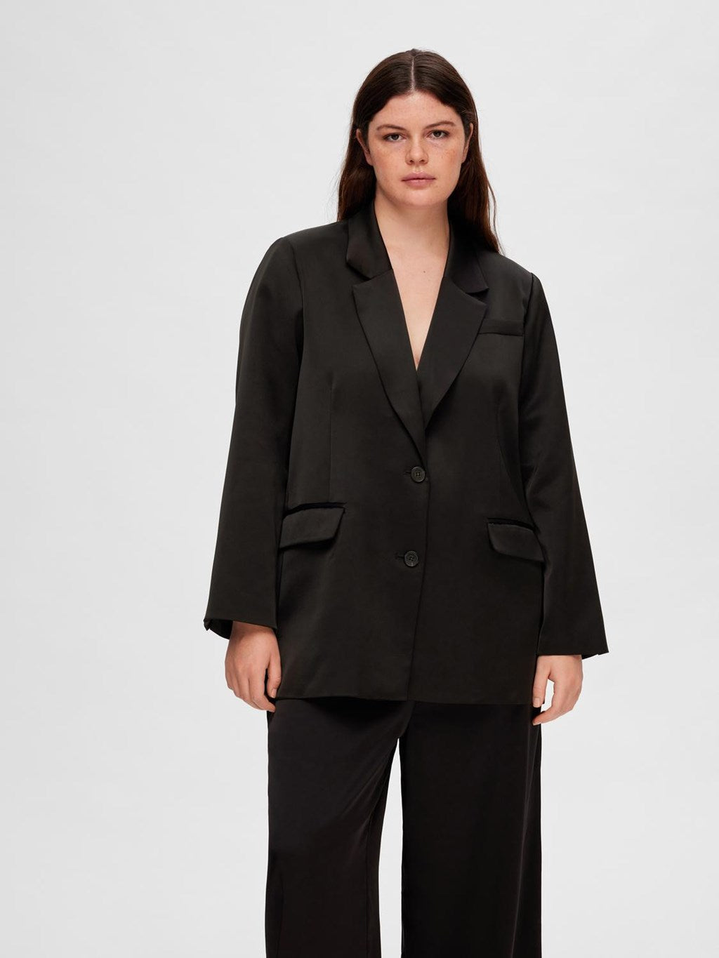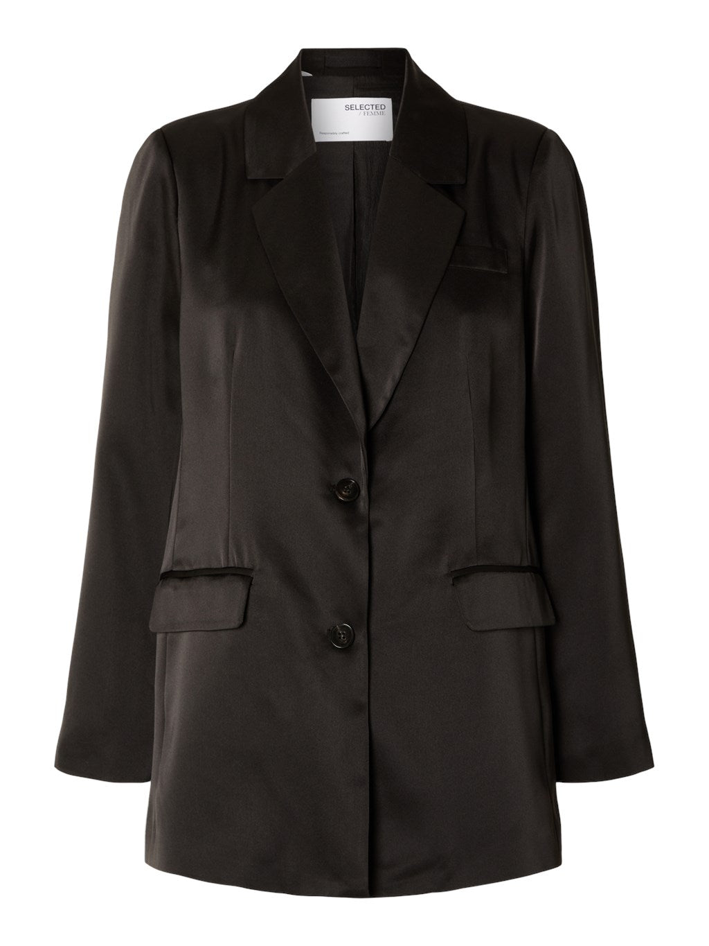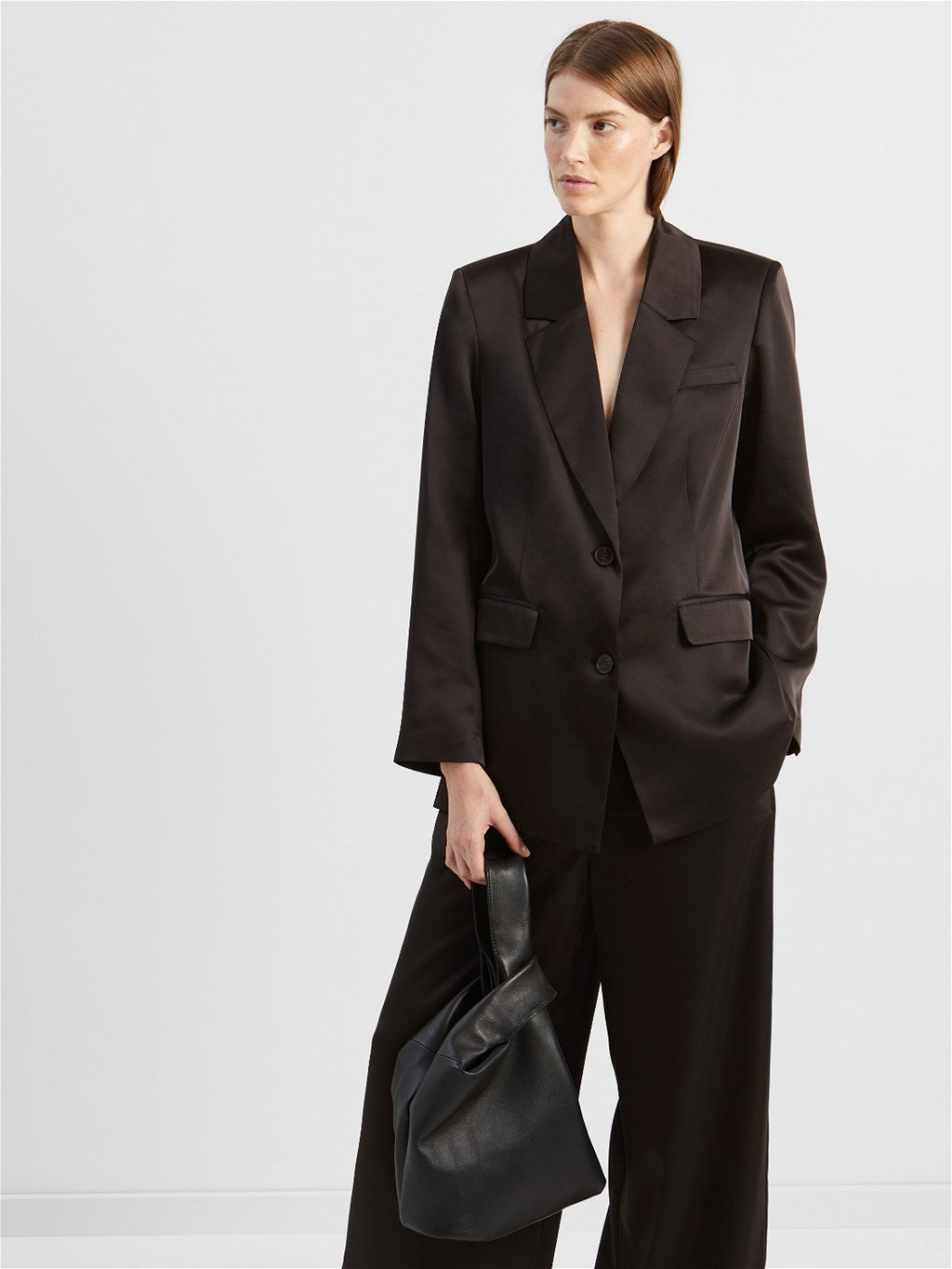 Dress up for moments of celebration with a look that you will remember. This fabulous satin blazer is a wardrobe staple with long lapel and double button detail. Wear with nothing underneath for a cheeky festive look or add a cami and wear open. Pair with the matching wide leg satin trousers.