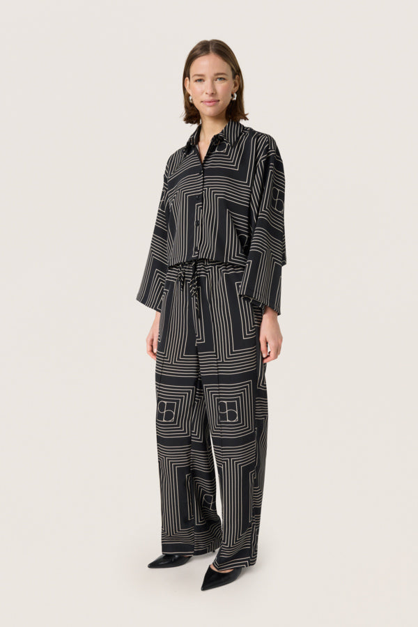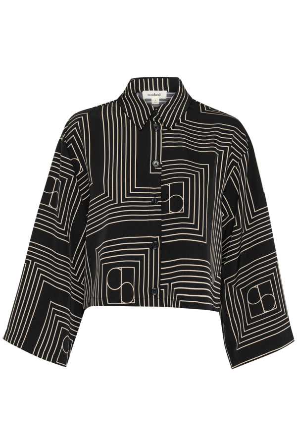 SLTopaz Long Sleeved Shirt in Black with Oatmeal Monogram