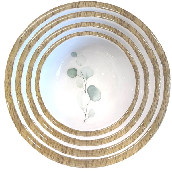 Gorgeous White with Eucalyptus Leaves bowl made of mango. Size: 25cm.
