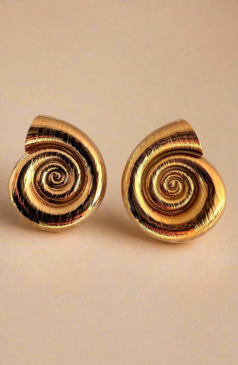 Spiral Shell Earrings Summer Holiday Studs 18k Gold Plated