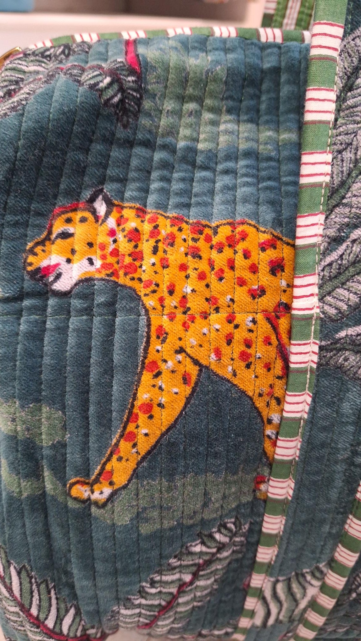 The block printed duffle bags are hand made by skilled craftsmen and women in small batches. Quilted with velvet cotton for durability but lightweight and spacious, the Ladies Cotton Duffle bag is ideal for travel, a day around town shopping, trip to the yoga studio or gym, or simply a stylish replacement for your handbag.