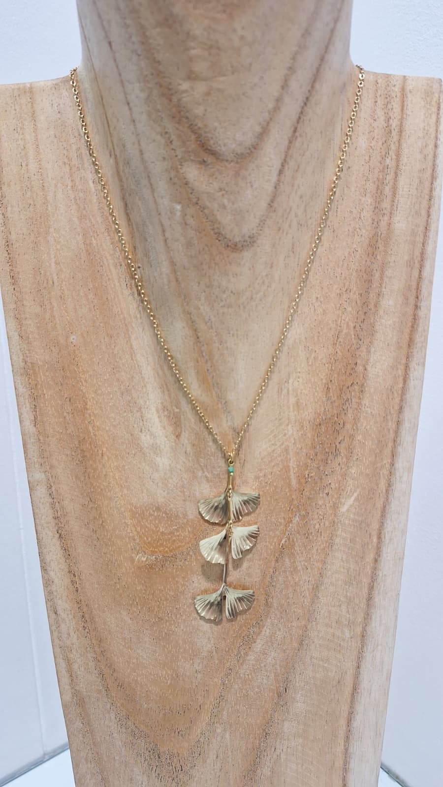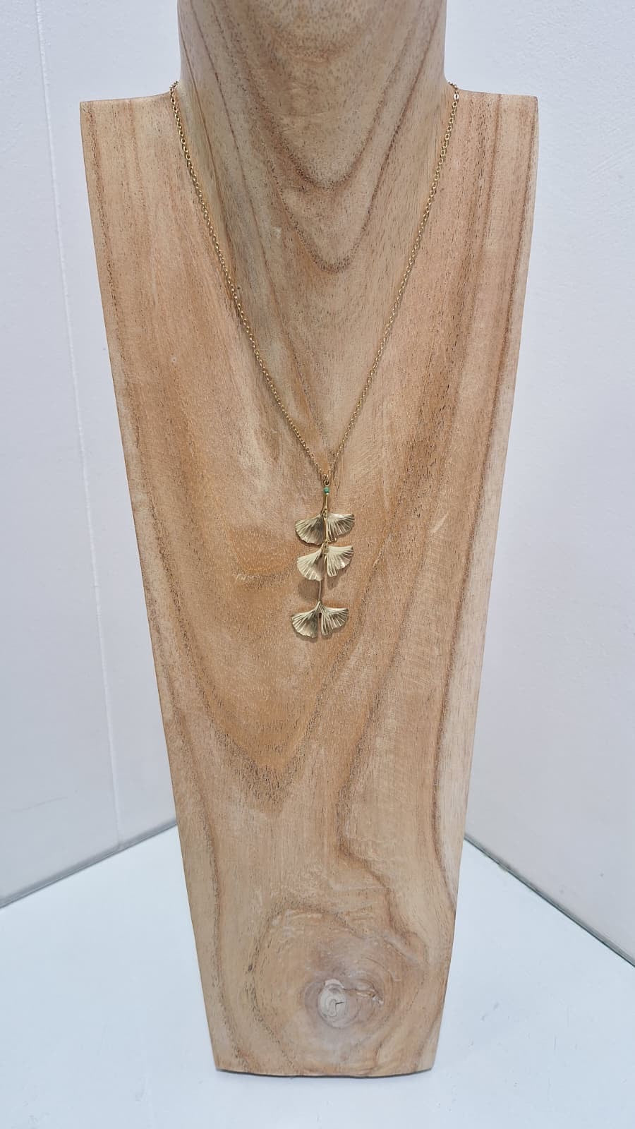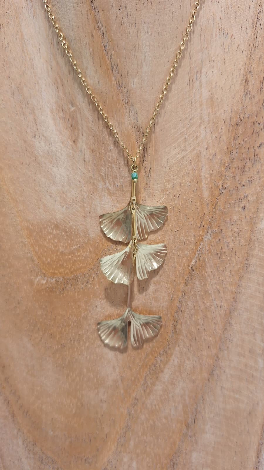 Ginkgo Three Leafs Brass Necklace